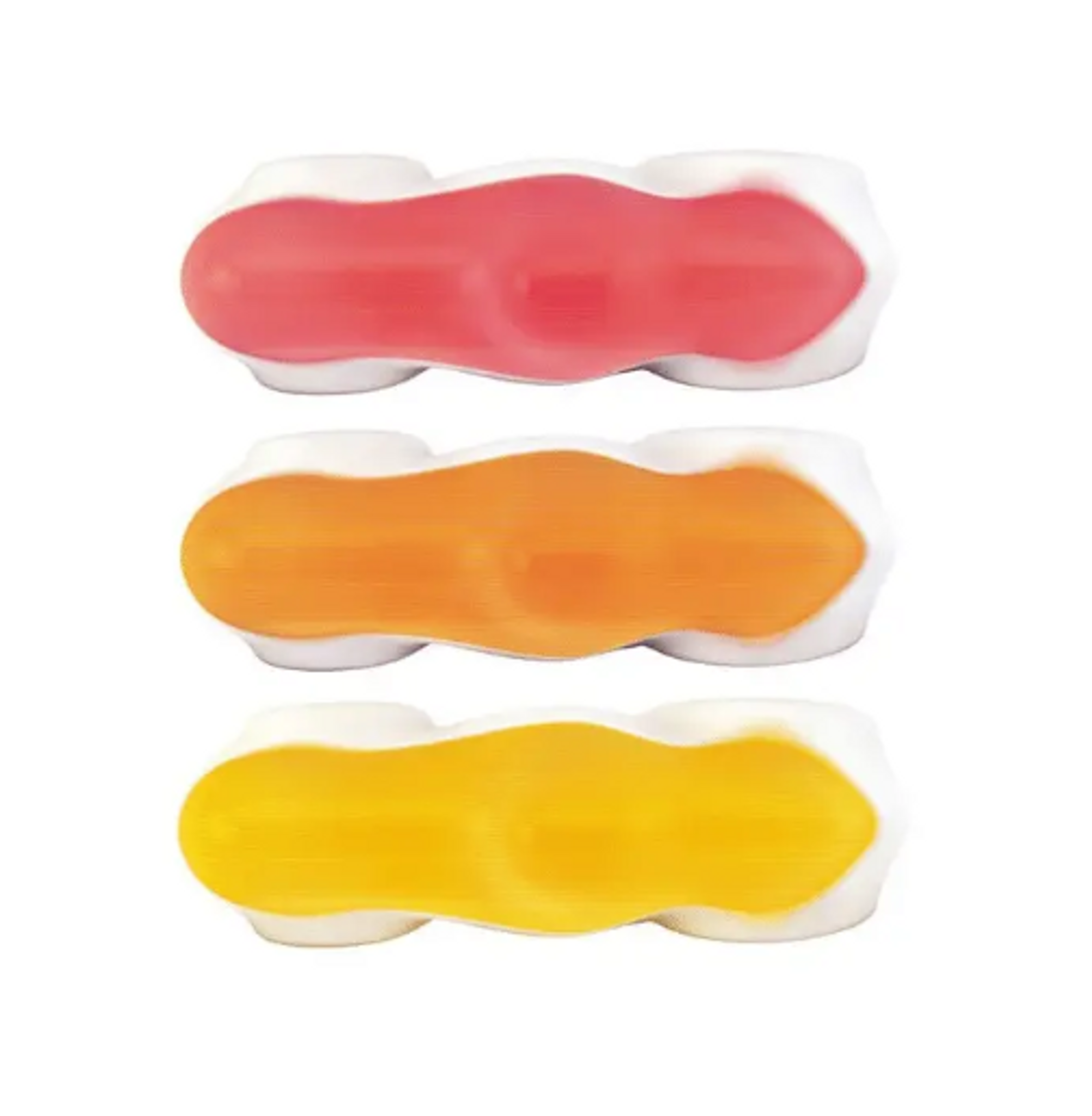 Här möts tre fruktiga smaker i tre färger: Röd: hallon, Gul: citron, Orange: tutti frutti.