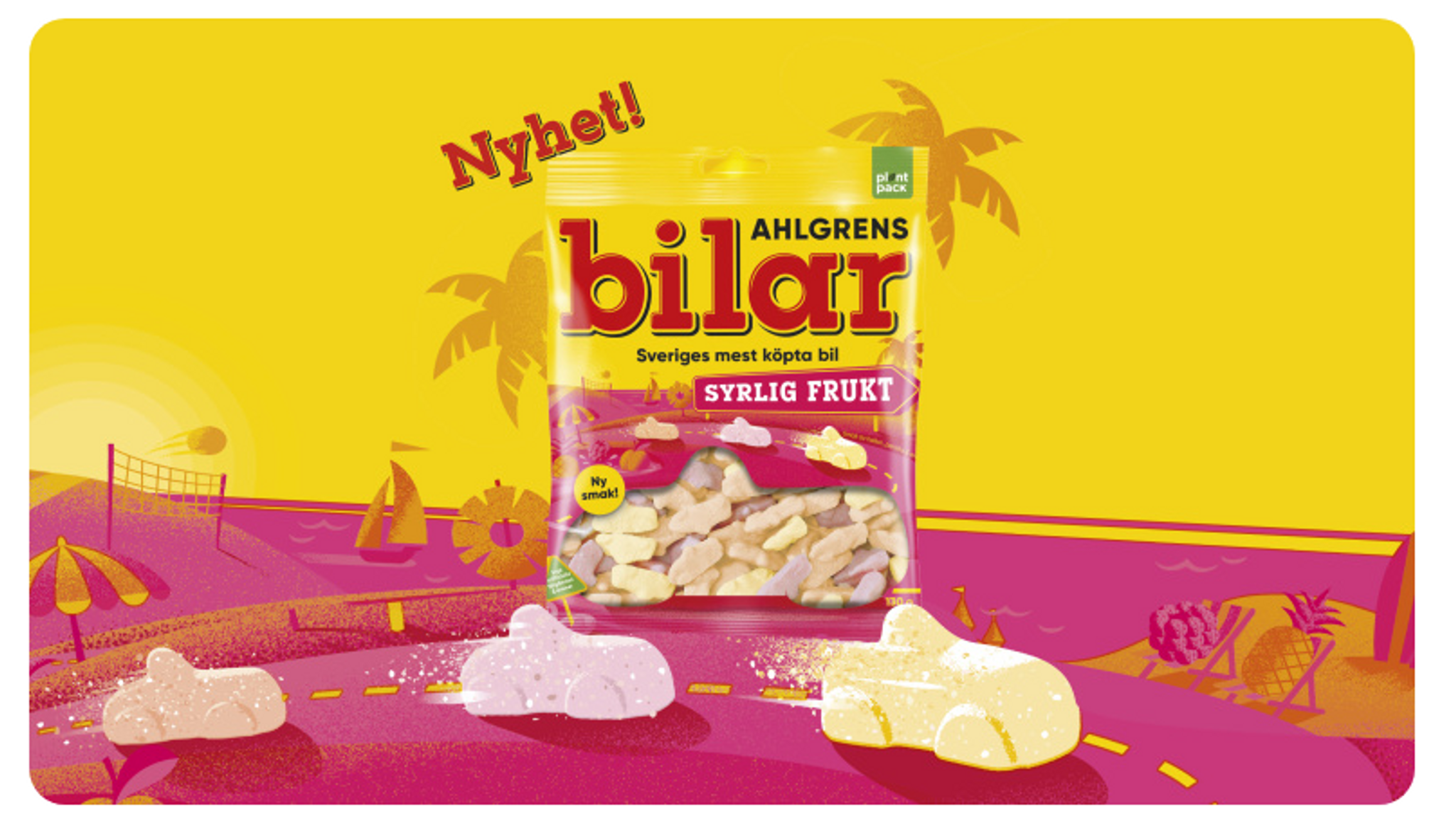 Ahlgrens Bilar Syrlig Frukt är perfekt för dig som gillar syrligt skumgodis med fruktig twist. Påsen innehåller smaker av hallon, persika och ananas, i samma klassiska form och mjuka konsistens som originalbilarna.