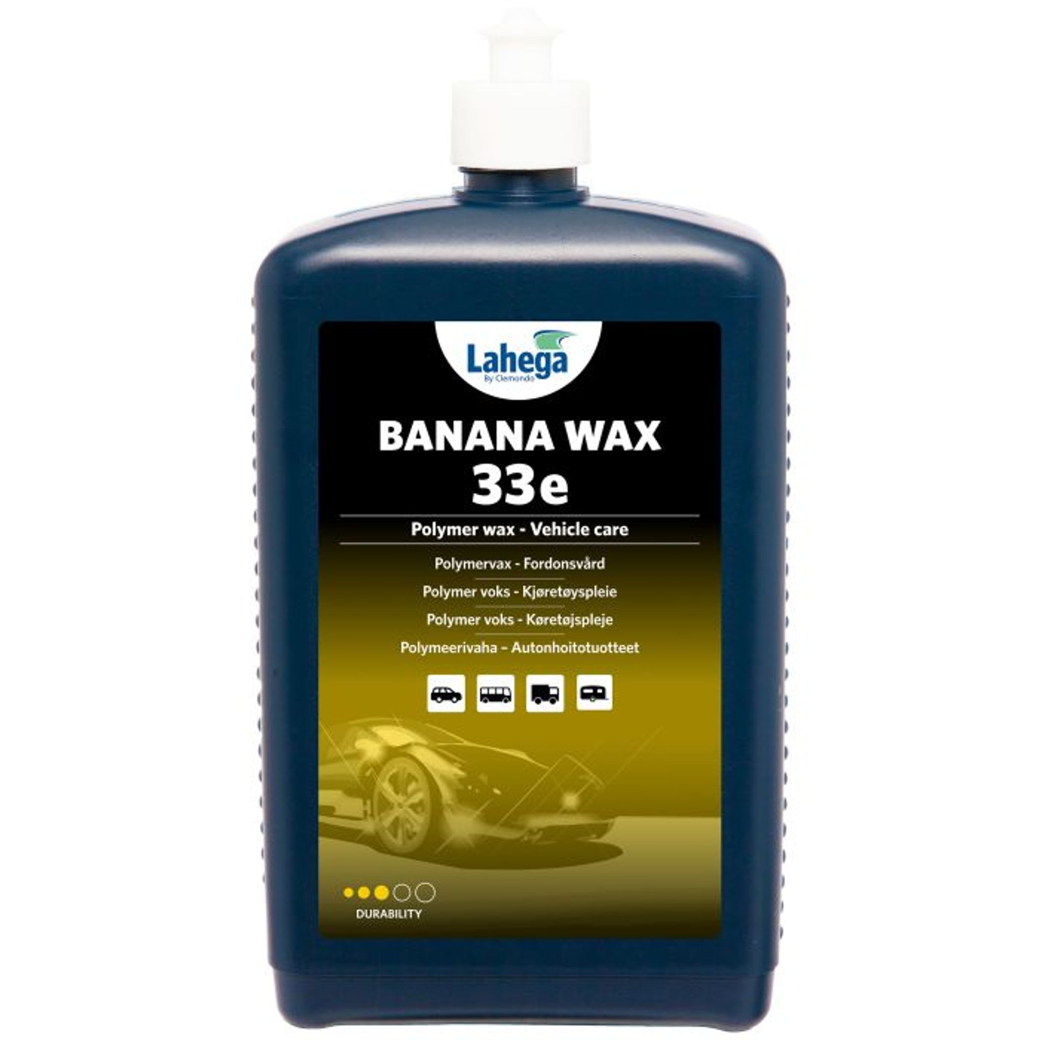 Banana Wax 33e är ett extremt lättarbetad polymervax för alla typer av billacker. Ger enastående lyster och glans med upp till 6 månaders skyddstid. Formula som gör det lätt att torka av vaxrester från plast- och gummidetaljer.