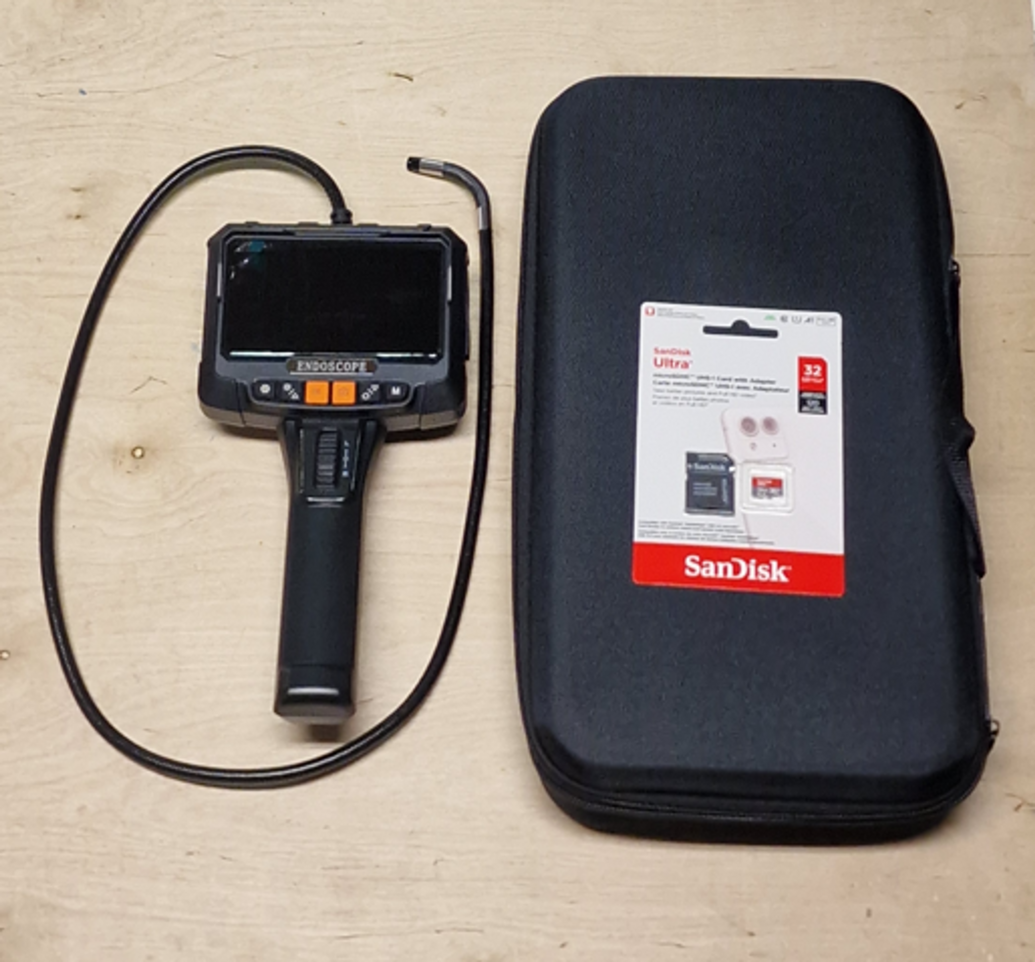 Endoskop med vridbart huvud för undersökning av trånga utrymme.