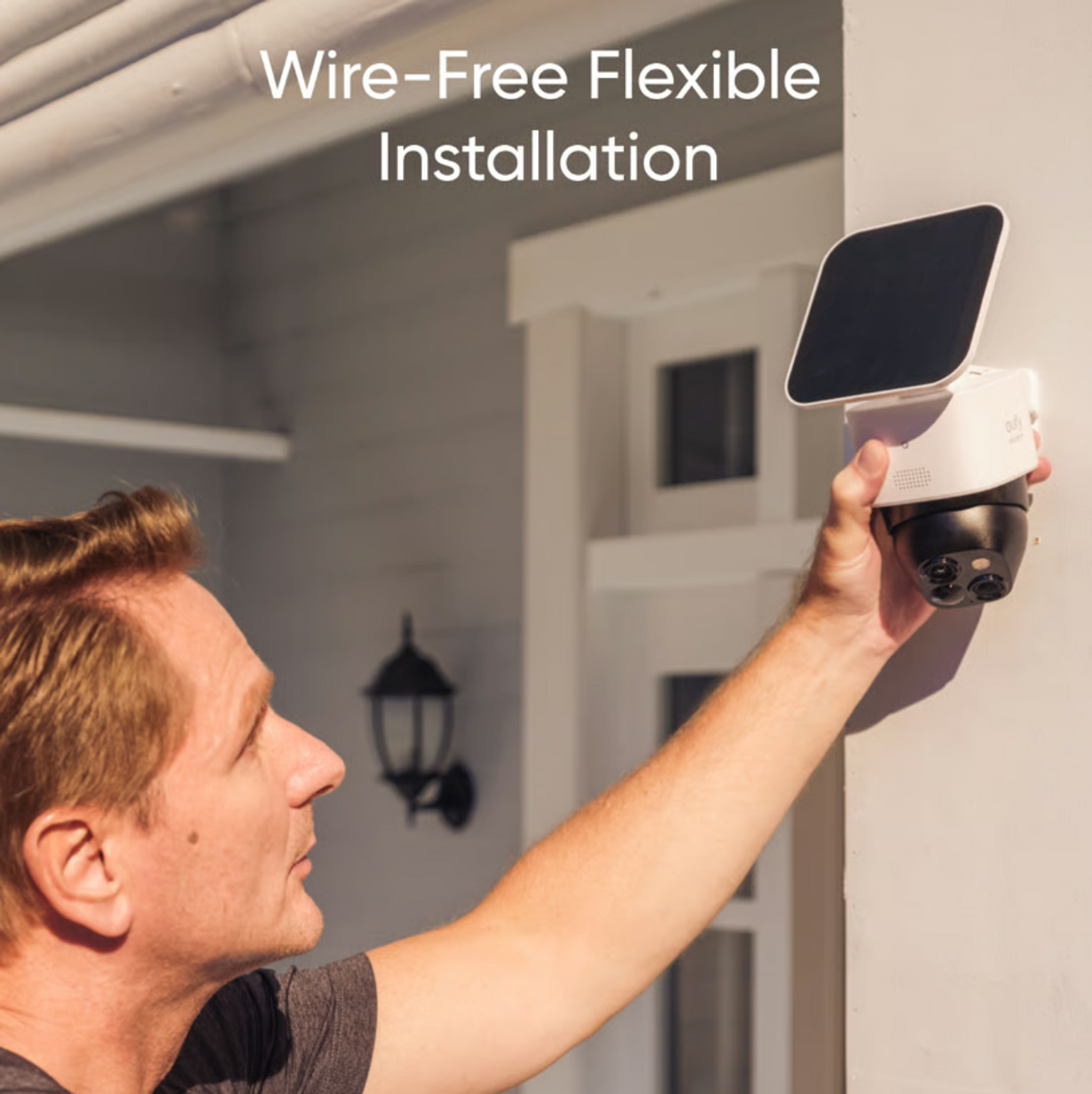 Den justerbara solpanelen kan monteras direkt på kameran eller placeras på en närliggande vägg för optimal solexponering och kontinuerlig drift.
