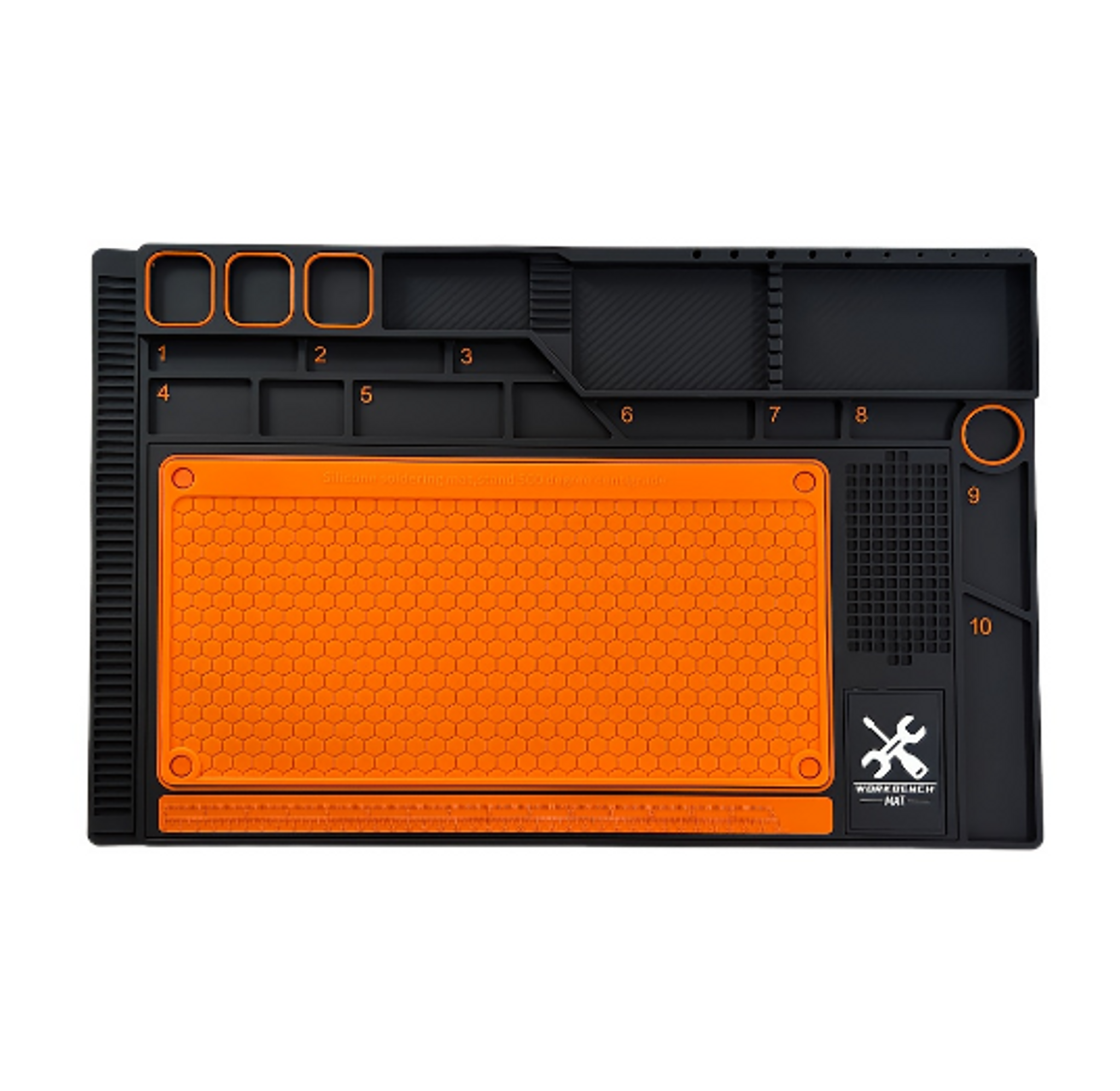Praktisk och värmetålig arbetsmatta som gör reparationer av mobiltelefoner, datorer och annan elektronik enklare och mer organiserade. Mattan är tillverkad i slitstark silikon/PVC och tål höga temperaturer från lödarbete utan att skadas.