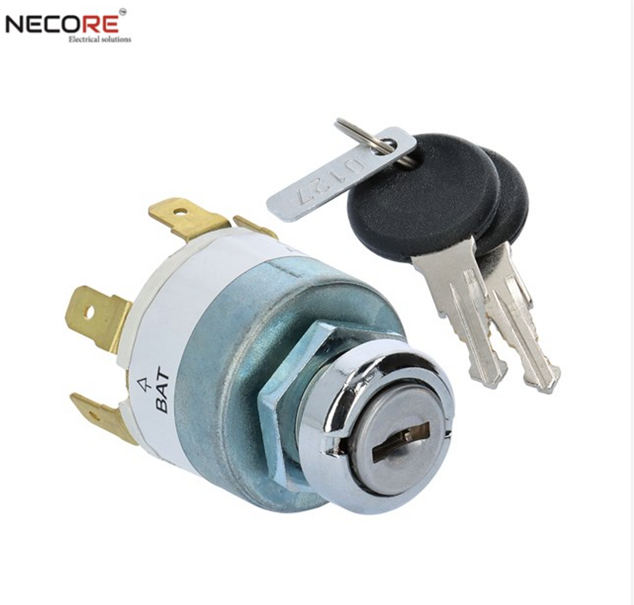 Tändningslås med funktionerna parkeringsljus, av, tändning och start (återfjädrande). Levereras med 2 nycklar.